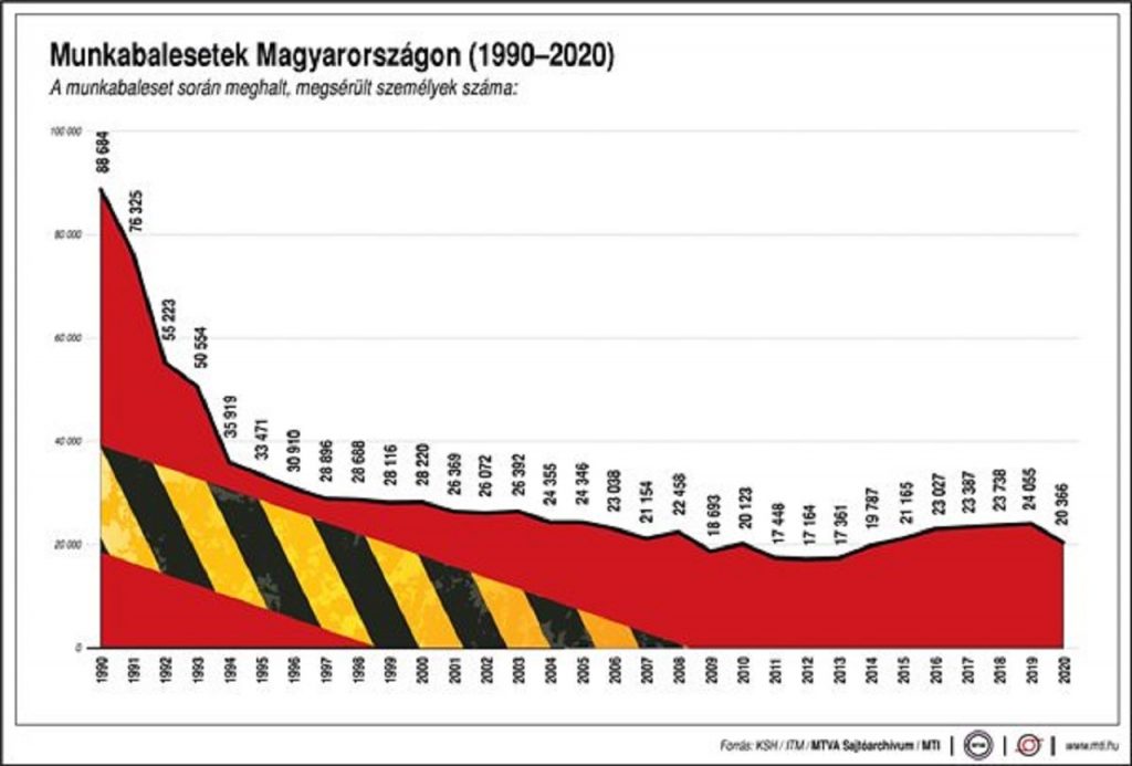 Az ITM adatai alapján 2020-ban a tavalyelőtti több mint 24 ezerrel szemben 20 366 munkabalesetet, ebből a 2019-es 83-hoz képest 64 halálos kimenetelűt jelentettek. A szomorú statisztika éllovasa még mindig az építőipar, de a balesetek száma ebben az ágazatban is ezer alá csökkent – írták.