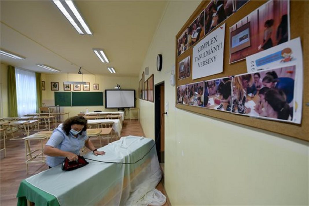 Fotó: MTI/Czeglédi Zsolt: Fertőtlenítés a debreceni Szoboszlói Úti Általános Iskolában