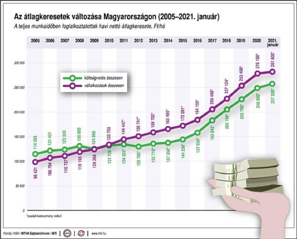 A nettó átlagkereset a kedvezményeket is figyelembe véve 280 500 forintot ért el, 9,2 százalékkal emelkedett az előző év azonos időszakához viszonyítva.
